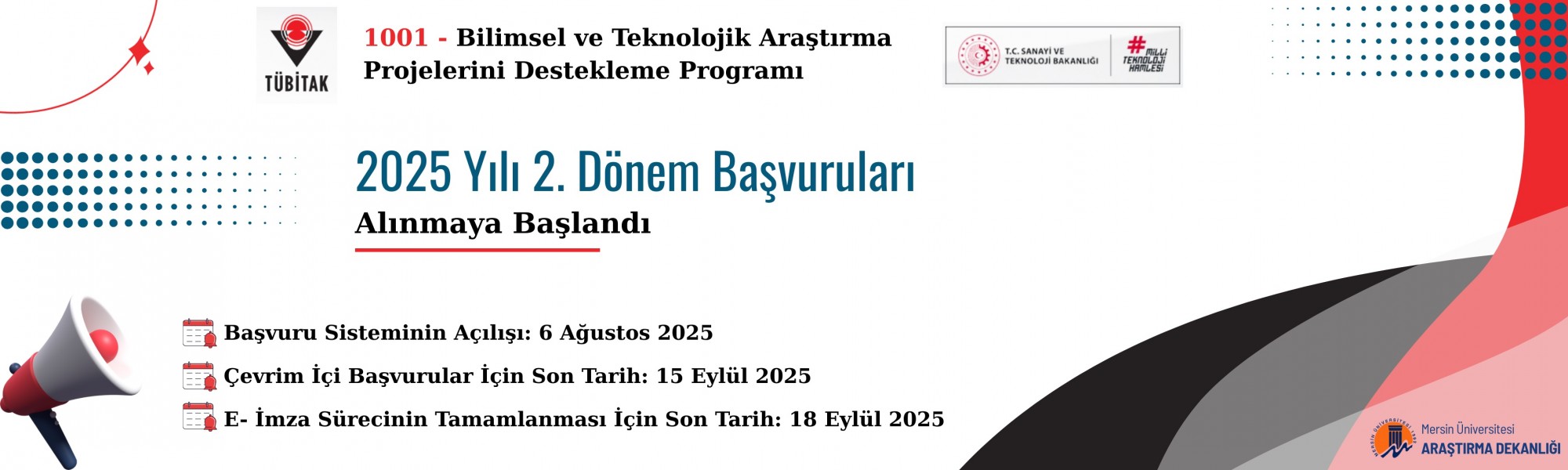 TÜBİTAK 1001 - Bilimsel ve Teknolojik Araştırma Projelerini Destekleme Programı 2025 Yılı 2.Dönem Başvuruları
