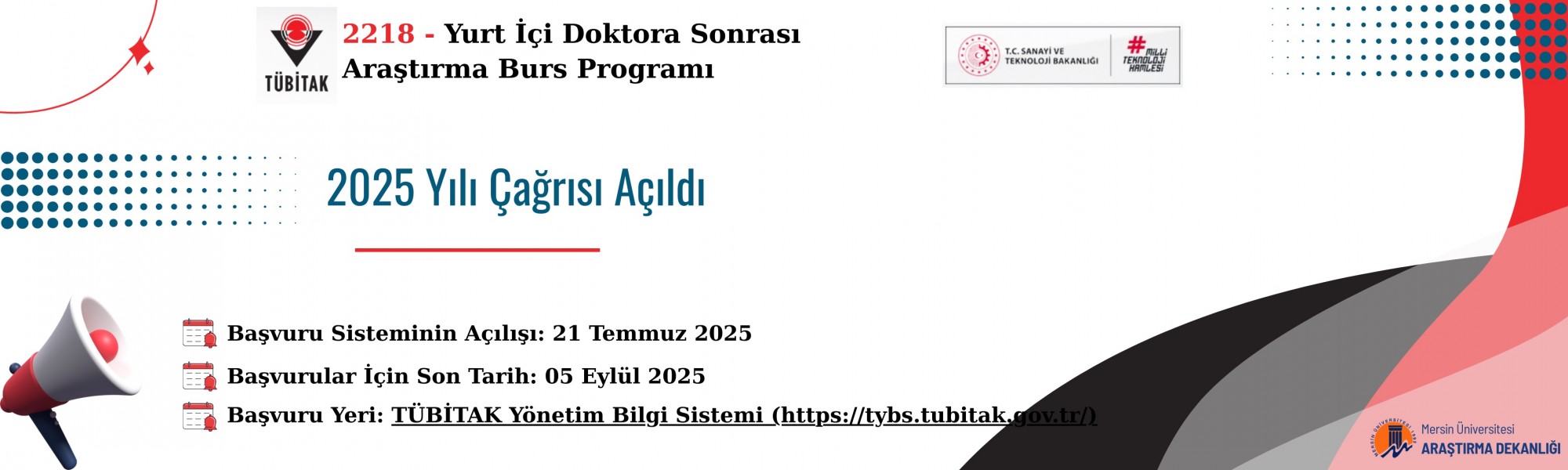TÜBİTAK 2218 – Yurt İçi Doktora Sonrası Araştırma Burs Programı 2025 Yılı Çağrısı TÜBİTAK Bilim İnsanı Destek Programları Başkanlığı (BİDEB) tarafından yürütülen 2