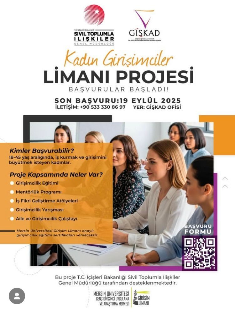 Girişimci Kadınlar Limanı” Projesi Başlıyor!İçişleri Bakanlığımız tarafından kabul edilen ve Mersin Valiliği İl Sivil Toplumla İlişkiler Müdürlüğü koordinasyonunda, Girişimci
