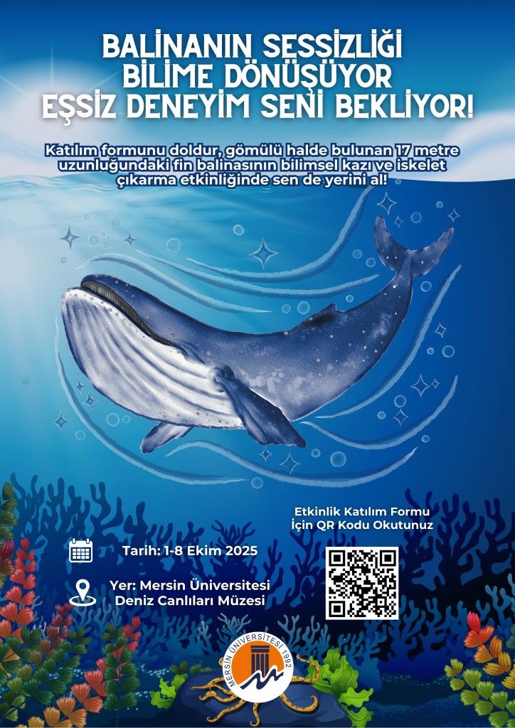 Mersin Üniversitesi Deniz Canlıları Müzesi olarak bilimsel çalışmalarımıza ve müze koleksiyonumuza büyük katkı sağlayacak olan Fin Balinası Bilimsel Kazı ve İskelet Çıkarma Etkinliğini gerçekleştirmekten heyecan duyuy