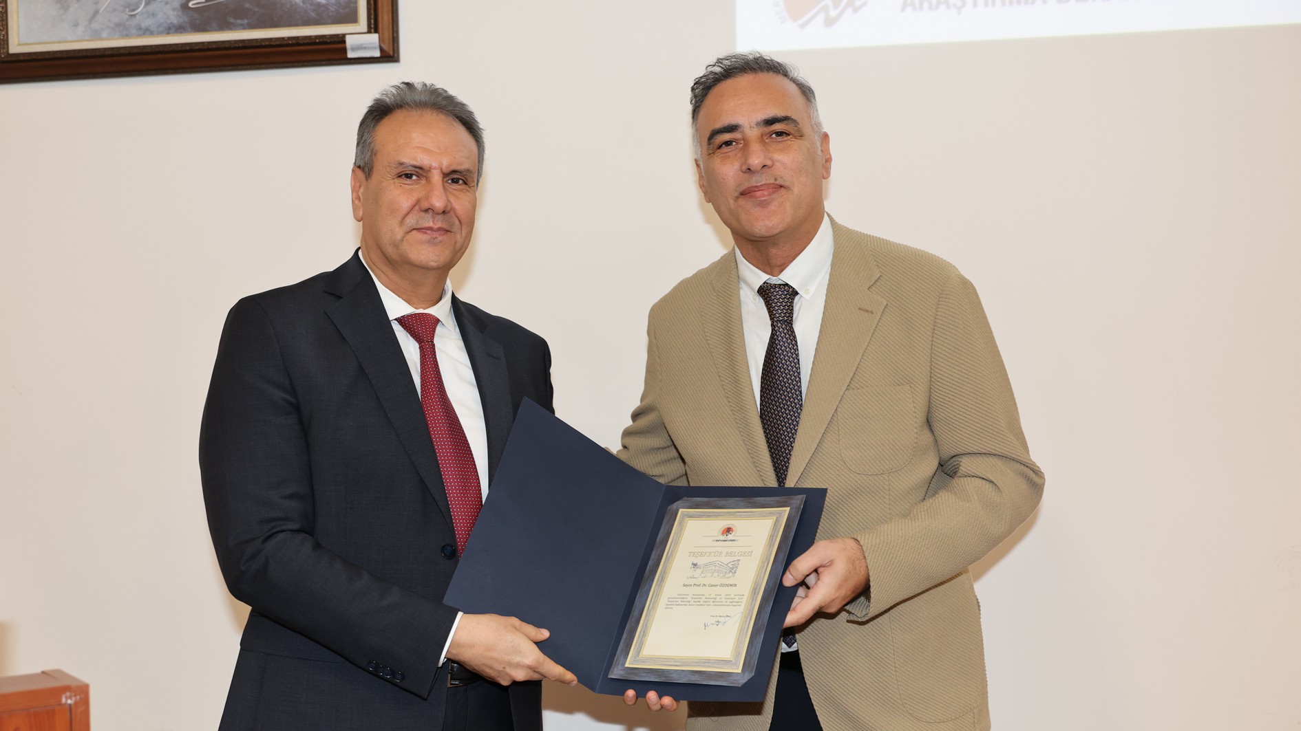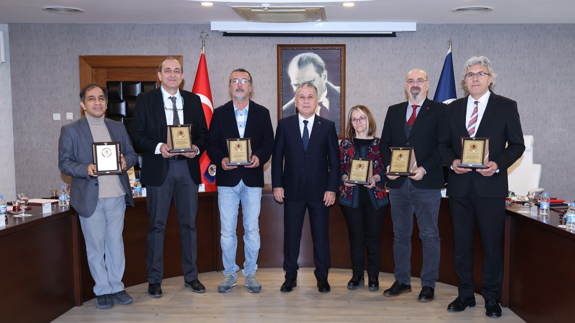 Üniversitemizde profesörlük ünvanı alan öğretim üyelerimize belgeleri, akademik birimlerdeki idari görev sürelerini tamamlayan öğretim elemanlarımıza ise plaketleri Rektörümüz Prof. Dr. Erol Yaşar tarafından takdim e