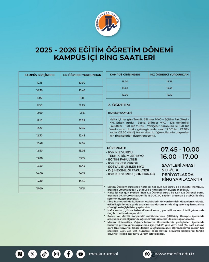 Kampüs İçi Ring Saatleri